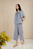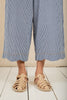 Loose + relaxed fitting, 3/4 length, wide leg pull on trouser in organic cotton seersucker gingham, with an elasticated back and a feminine scallop hem detail.