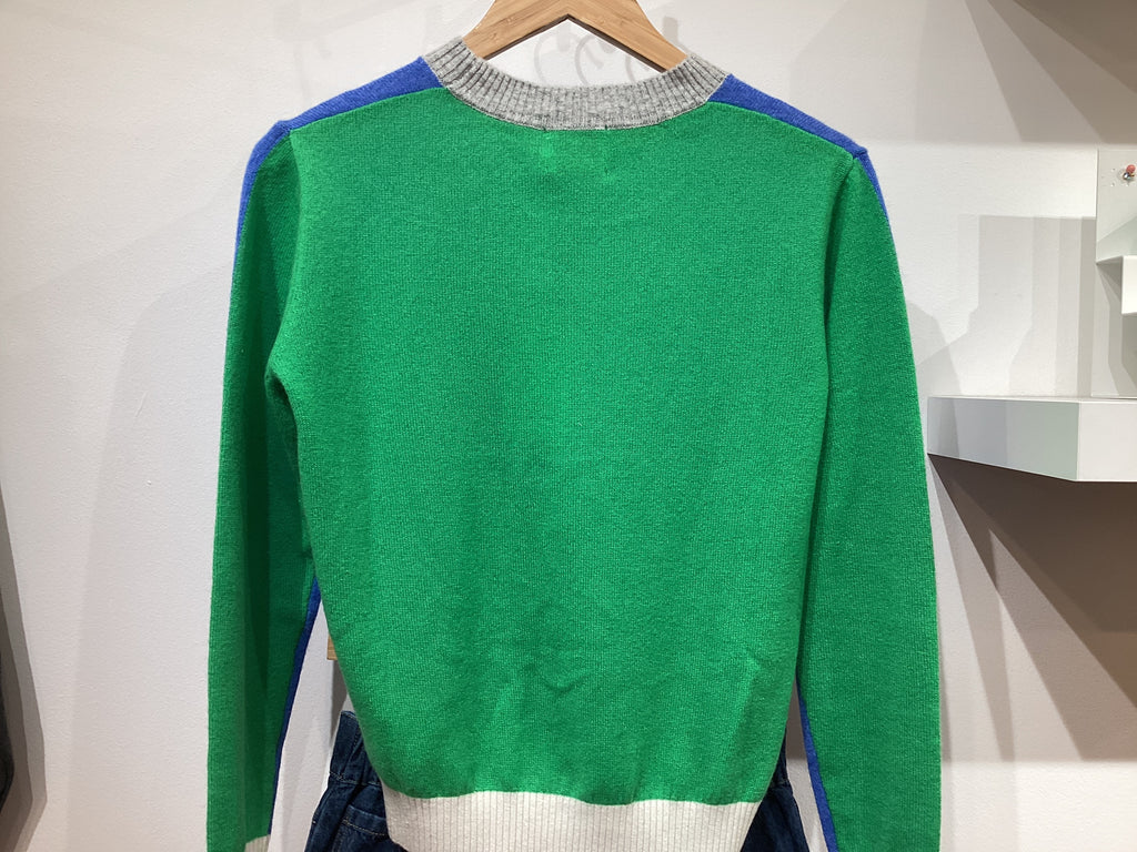 Brodie Cashmere summer colour block crew neck jumper - spring green/grey/white