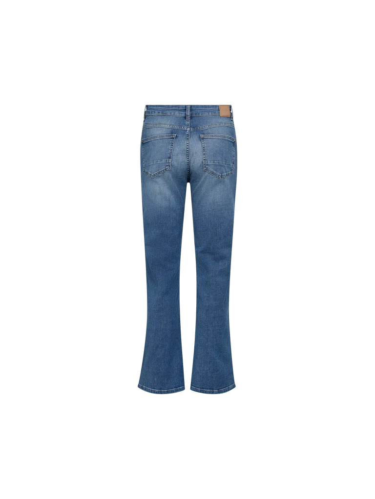 A flattering flared jean designed to elongate the silhouette. Crafted from a soft, stretchy denim for a comfortable fit that moves with you. Designed with a high waist, classic five-pocket style, and concealed button and zip closure. The subtle flared leg adds a touch of retro charm - perfect with a tucked-in blouse or a statement tee.
