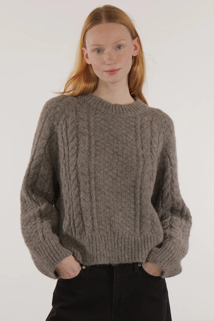 A timeless revisited: this twisted sweater seduces with its authentic, refined allure, highlighted by a classic round neckline. Its brushed baby alpaca knit gives it exceptional softness and warmth, ideal for cooler days.