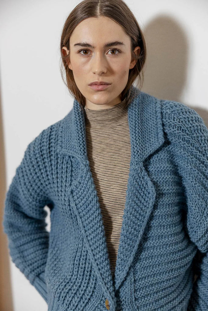 STING is a chunky knit cardigan with a slightly cropped fit and a tactile, handcrafted feel.