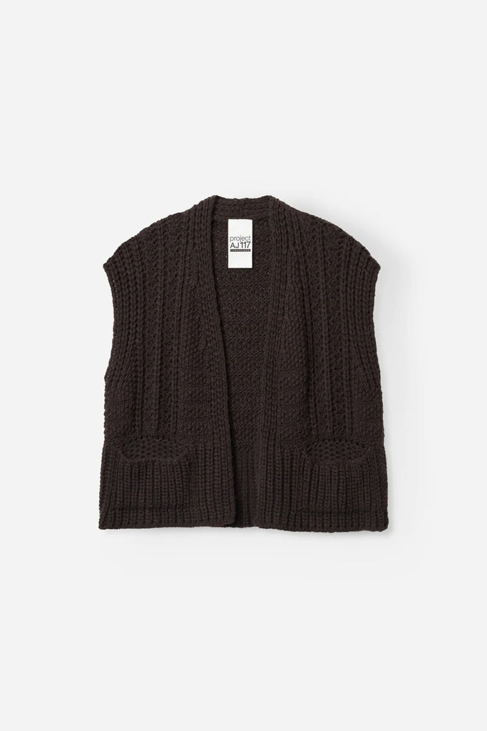 SUSIE is a chunky knitted vest with a soft, textured feel and relaxed silhouette