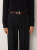 The Lyocell has a clean, fluid fall, its depth of navy shifting subtly in the light. A fabric chosen for both structure and softness, it grounds the piece in understated elegance