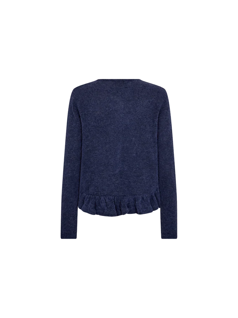 A soft wool-blend cardigan with long sleeves, button closure, and delicate frill detailing at the hem. The flattering fit and feminine design make it perfect for adding texture to everyday looks