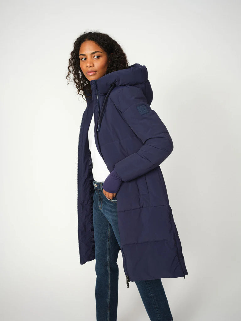 This puffer coat is filled with ETHERMALOFT®, an innovative heat fibre technology that efficiently absorbs and converts energy, such as sunlight, to keep you warm. The long, hooded design features a zipper closure, practical pockets, and side zippers at the hem for an adjustable fit. Elasticated cuffs add extra comfort and insulation, making it a functional and stylish choice for colder days.