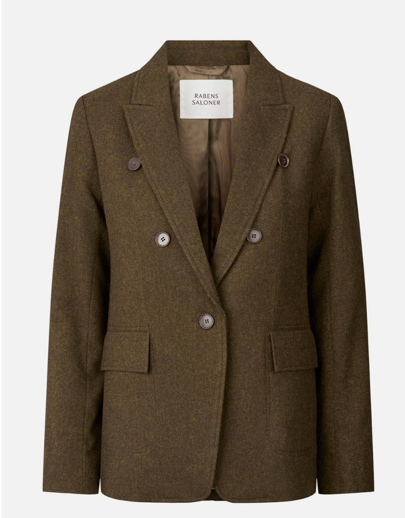 Rabens Saloner Akalie mini herringbone blazer - dark brown