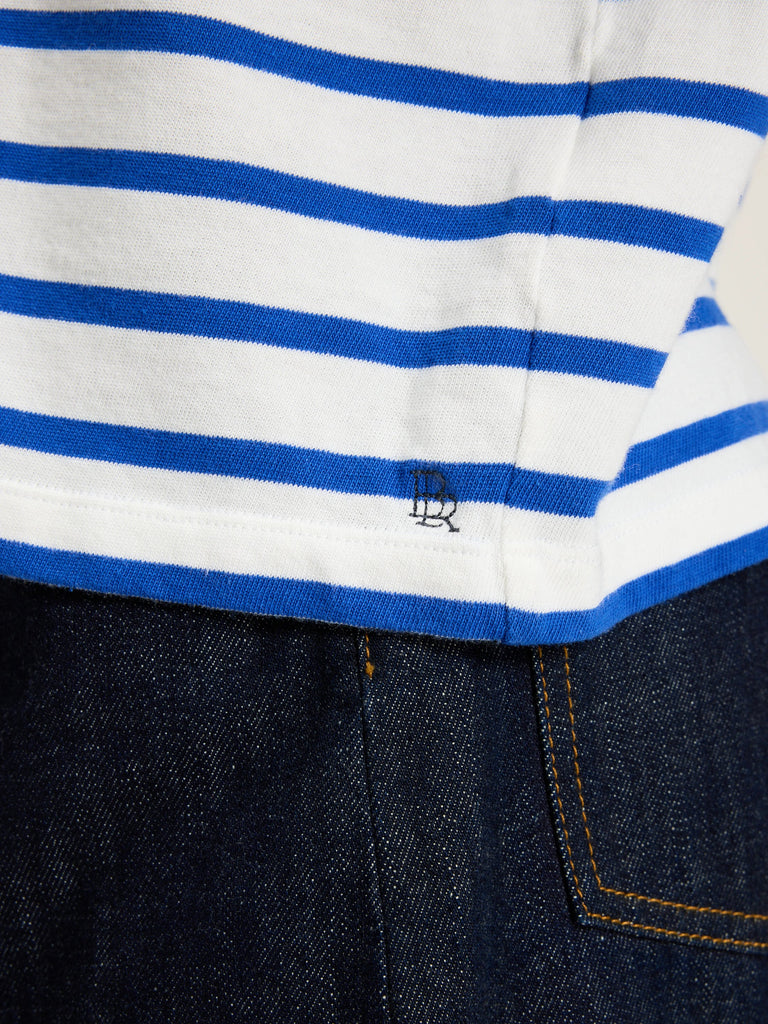 Classic fit, crew neck t-shirt with raglan sleeves and button in the back, made from heavy weight, stripped cotton jersey.