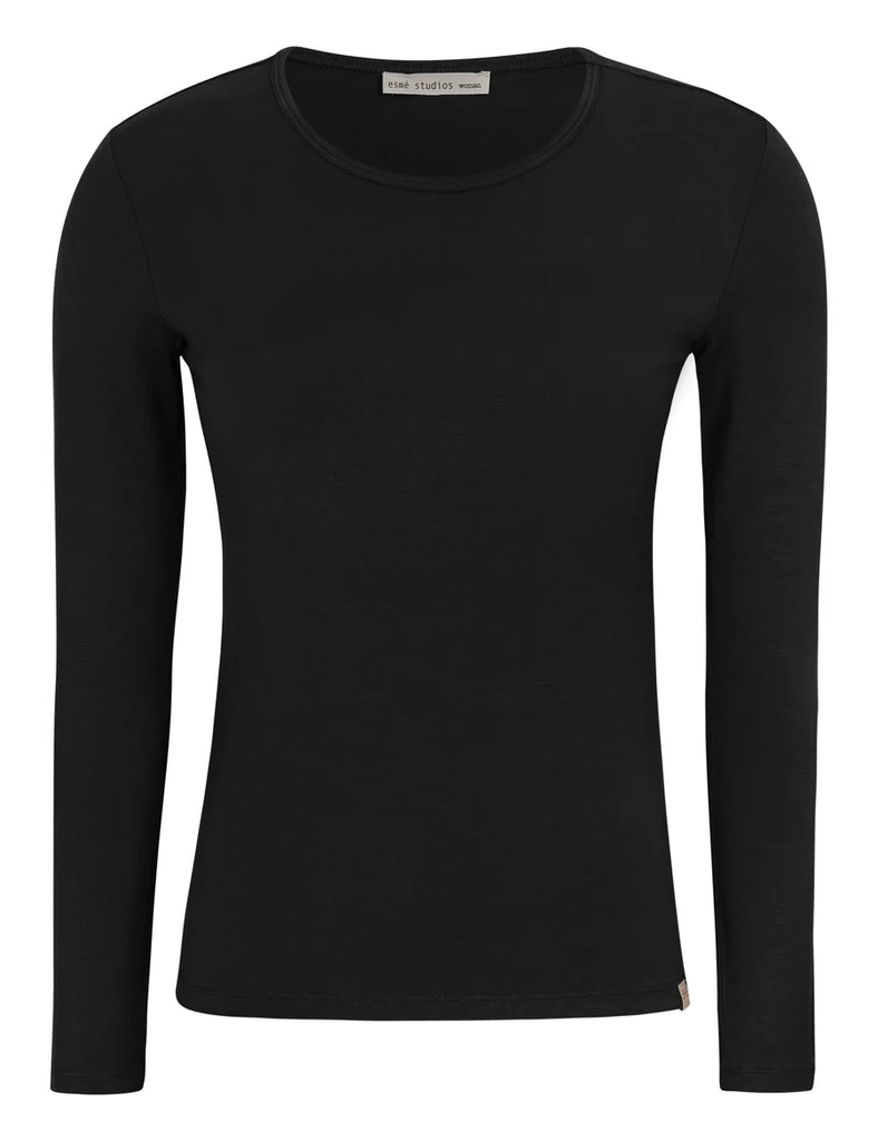 Crafted with regular long sleeves, classic t-shirt O-neck, and a logo label at the bottom hem.