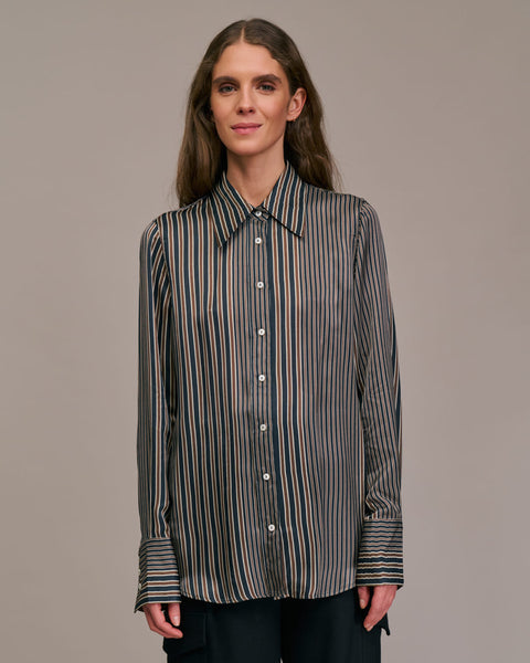 Emin + Paul striped dip hem shirt