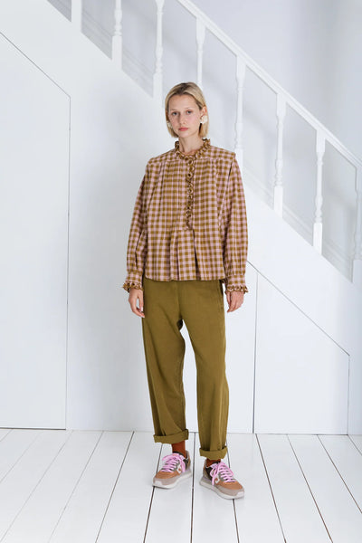 Bonte etienne gingham shirt - olive / pink