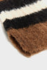 Classic fingerless ribbed mittens in a cream wool blend, featuring striped accents in blue and black.