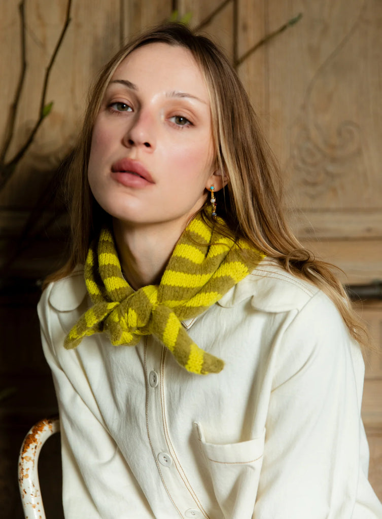 A versatile, effortless + super convenient triangle scarf in the warmest + softest alpaca mix yarn. This little charmer bound to perk up almost anything. Wear it as a head scarf for added fashion cred.