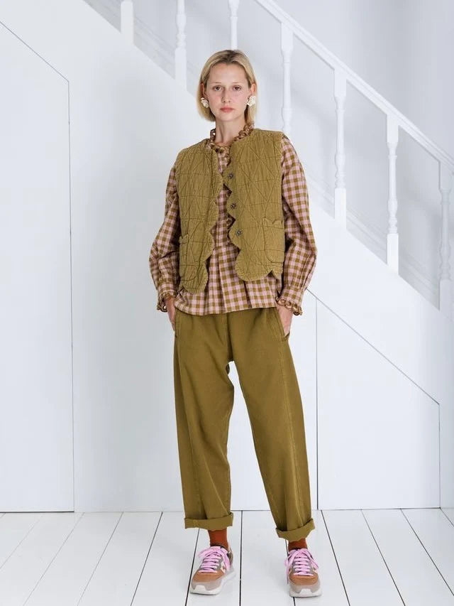 The Olive Quilted Estelle Gilet by Bonté combines timeless style with practical warmth, making it an essential layering piece for your wardrobe. Crafted with a durable quilted design, this gilet offers lightweight insulation that keeps you comfortable without bulk. The rich olive shade adds a versatile, earthy tone that pairs effortlessly with both casual and more polished looks. Whether you're out for a walk or adding an extra layer on a chilly day, its tailored fit and thoughtful detailing ensure you stay cozy while looking effortlessly chic. Perfect for transitional seasons, the Estelle Gilet blends function and fashion seamlessly.