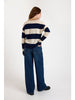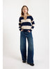 Brodie cashmere Ruby rugby striped jumper - navy/cygnet/camel