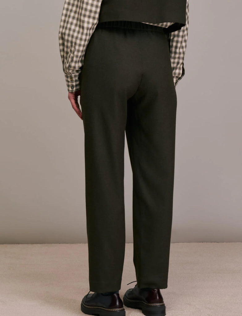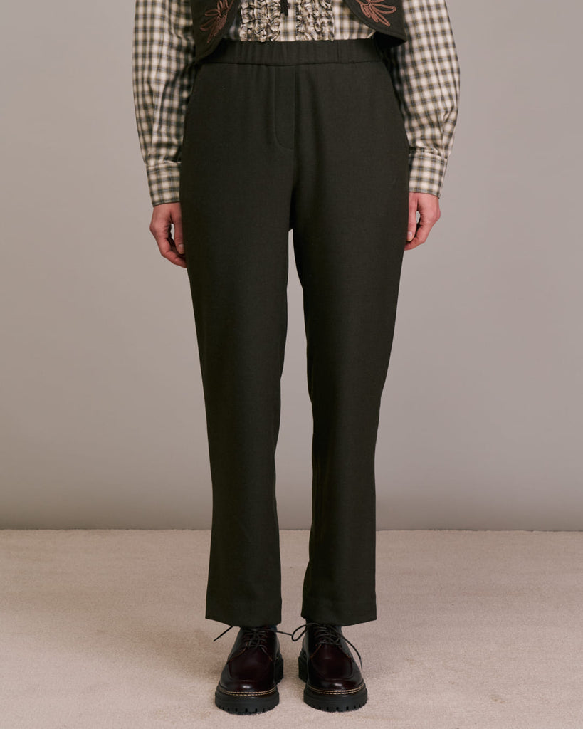 Straight-cut trousers, with wide semi-elastic waistband and two Italian pockets.