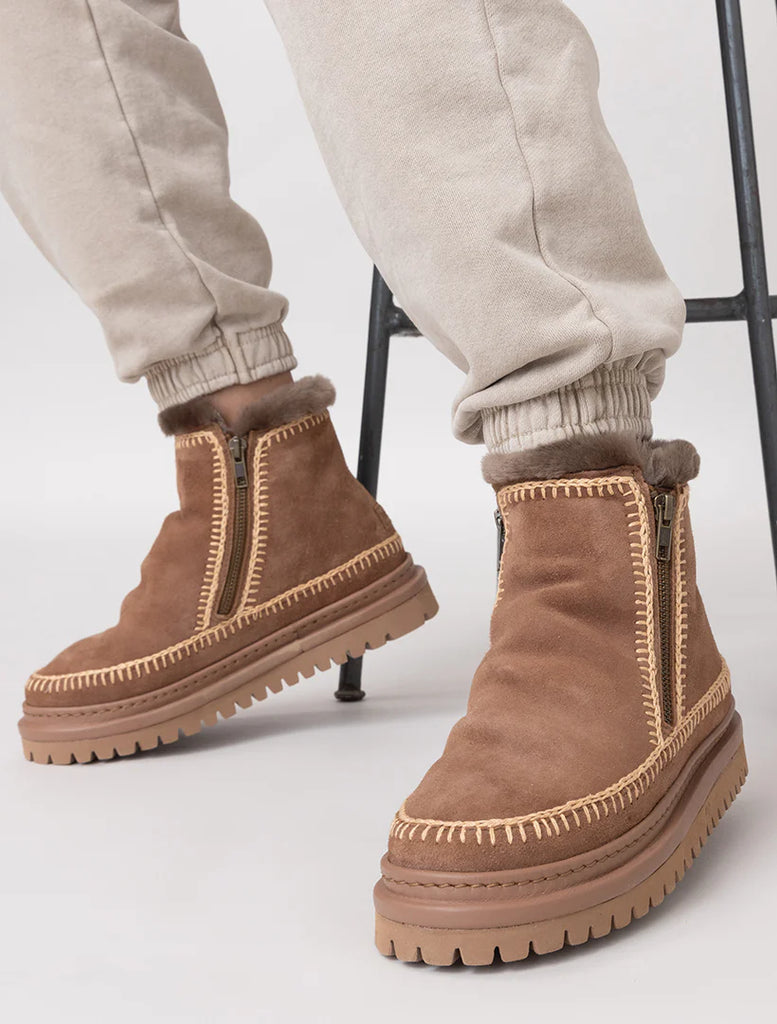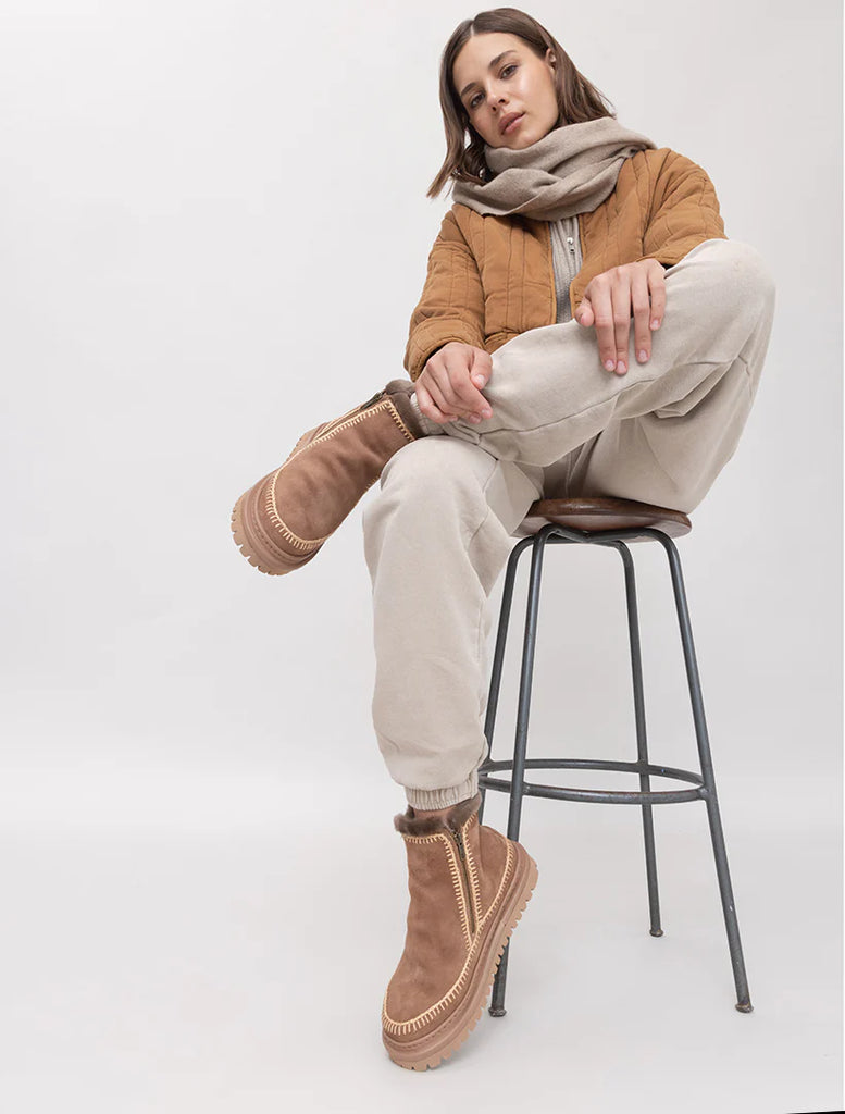 Laidback London Setsu 4 camel suede boot with beige stitching