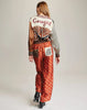 Sleeves have two different patterns. Cuffs are contrasting. Sporty Jade has a large “36” graphic on the front and reads “Ready When You Are” across the top of the back with a large wreath graphic on the back. Shipobo features a different pattern on each part of the shirt and reads “keep! Going” across the top of the back with an elaborate floral pattern. Rodeo has a different pattern on each part of the shirt and reads “Cowgirl” across the top of the back. The back is a large stylized star graphic.