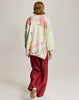 Wool, Acrylic, Nylon Blend. Our Liv long printed cardigan falls just below the hips and comes in all three of our patterns. V-neck, button down with five buttons, long sleeves with cuffs. Two front pockets and short side slits. This sweater is extremely versatile and can be paired with our dresses, pants or skirts for an eye-catching, comfy look.