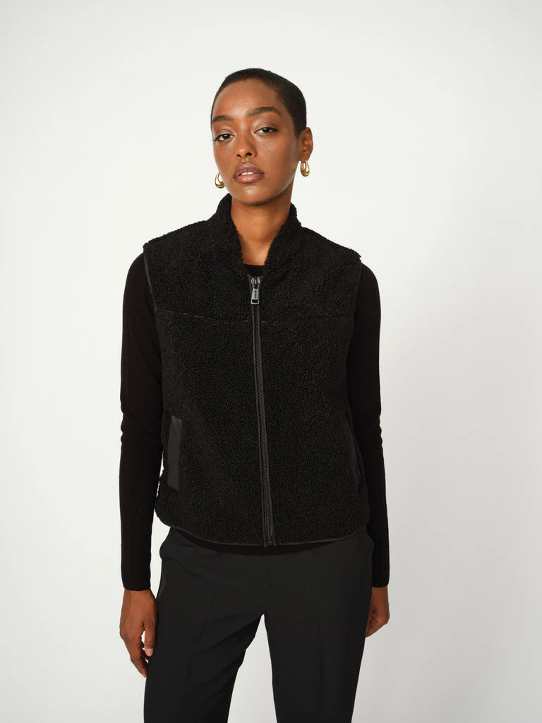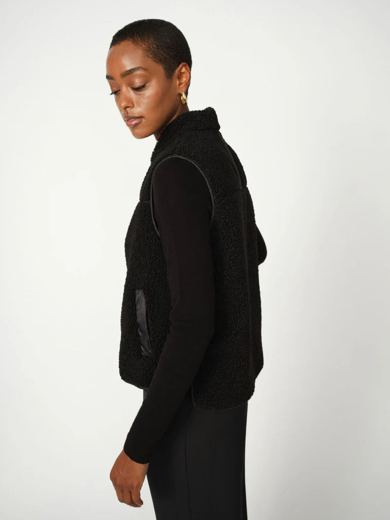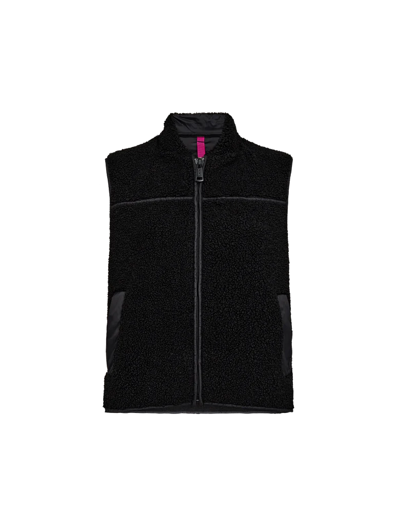 For chilly autumn days, a teddy waistcoat is the perfect layering essential. Crafted in a relaxed fit with eye-catching contrast-coloured piping, it has zipper closure and convenient front pockets. With a slightly longer back hem and stylish graphic cut side slits, we've added a signature twist with tape detailing on the back. Style it with a chunky knit for warmth or layer it over a trench coat