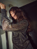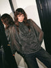 This elegant blouse is all about effortless glamour. Designed in a lightweight, semi-sheer fabric with subtle metallic threads, it catches the light beautifully while feeling soft against the skin. The voluminous sleeves are gathered at the cuffs for a feminine silhouette, and the high ruffled neckline adds a refined, romantic touch._x000D_