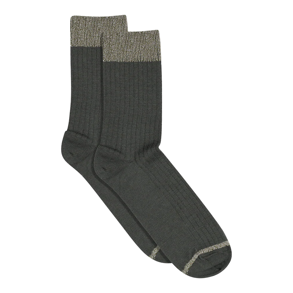 Soft wool socks from MPwoman, in merino wool. The sock features a wide ribbed cuff with glitter, as well as a narrow glitter detail at the toes.