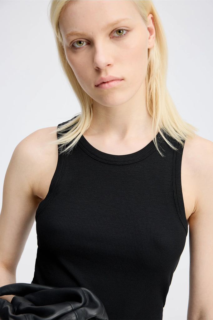 Soft, elegant tank made from an Ecovero viscose blend. This tank has a thin rib, a round neck and is designed for a slim fit.