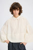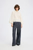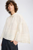 Elegant shirt blouse with wide, three-quarter-length sleeves and delicate pleat details on both the sleeves and at the hem. The blouse has a relaxed fit and can be buttoned halfway down.