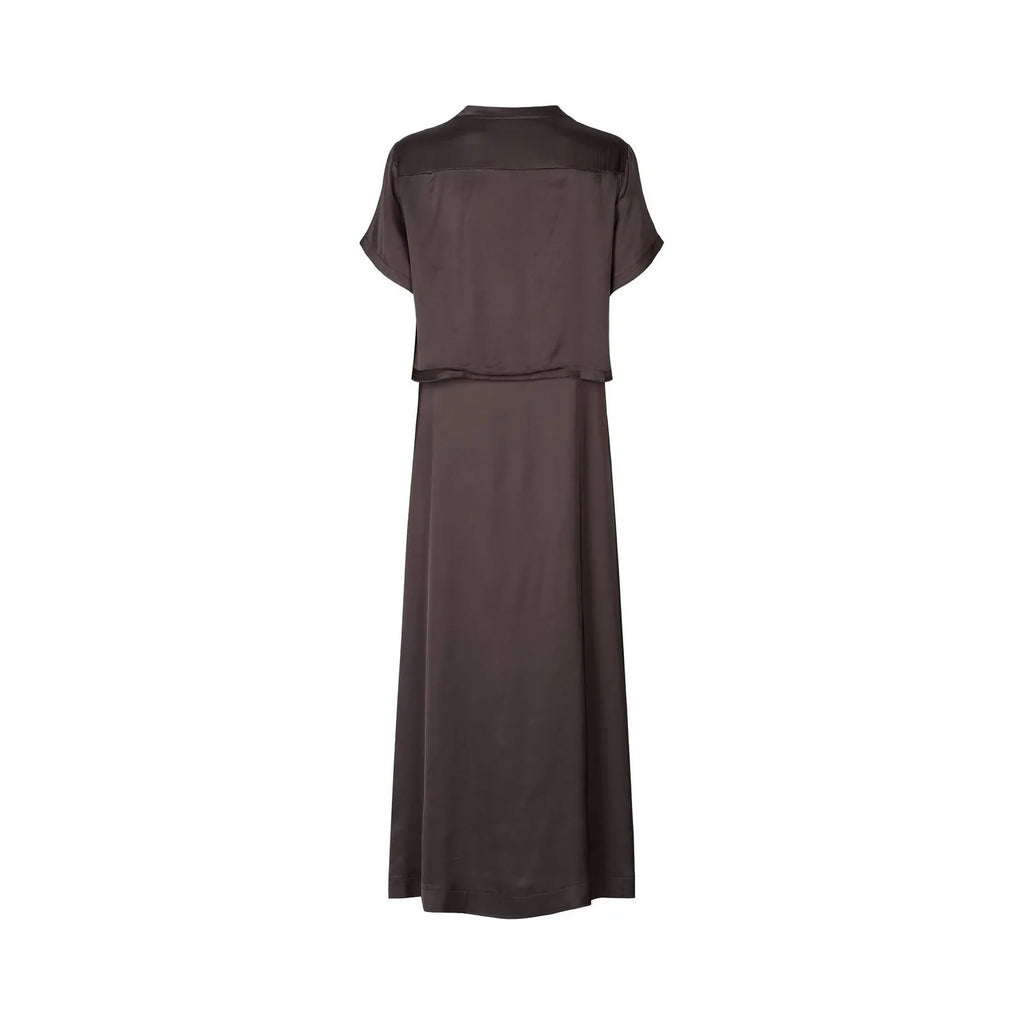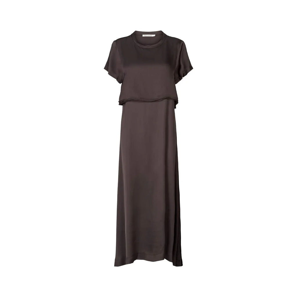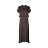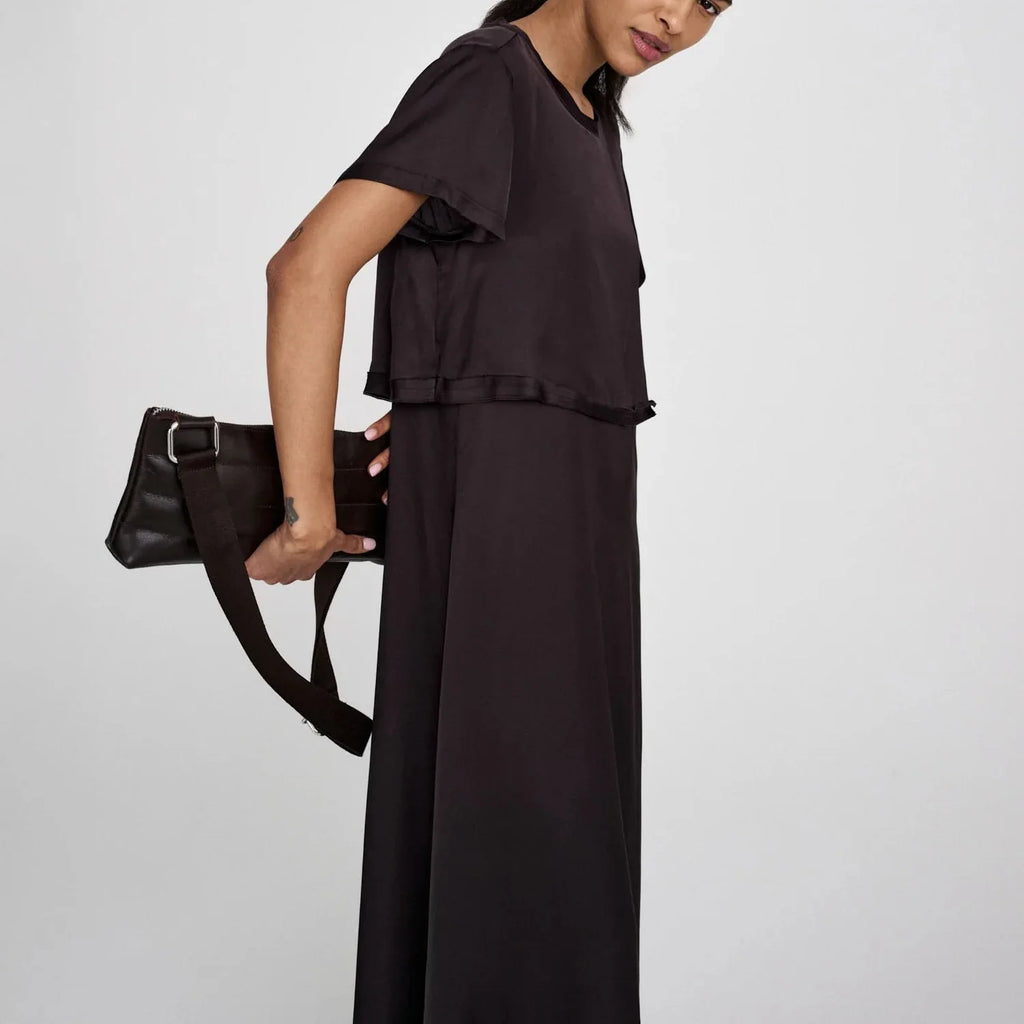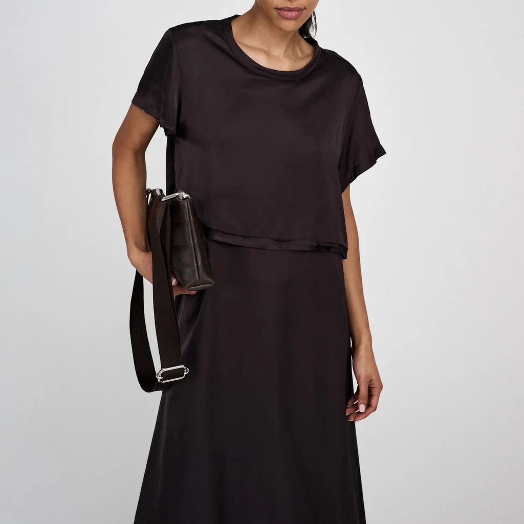 Crafted from a light, breathable fabric that drapes beautifully, this dress moves with you for all-day comfort. The relaxed, longline shape features a classic T-shirt top with a round neckline, short loose-fitting sleeves, and a softly flared skirt that adds a touch of feminine flow. Perfect for day-to-night dressing, its understated design offers endless styling possibilities!