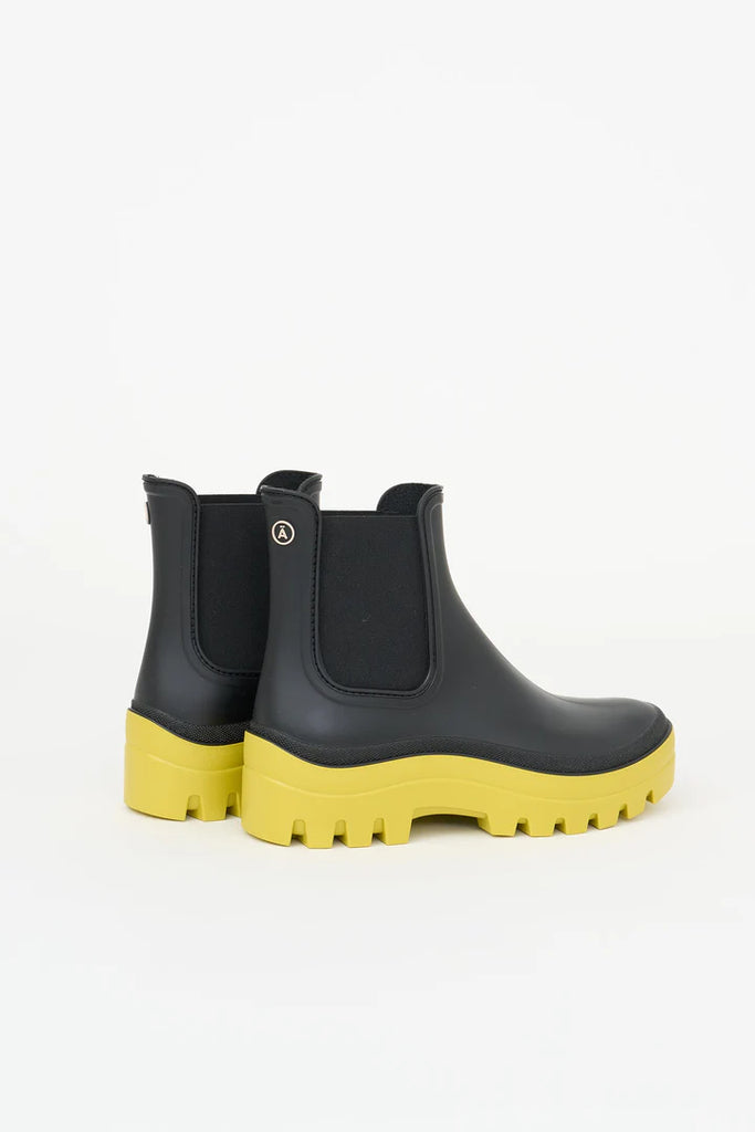 Brighten up gloomy days with the Prahara Chelsea Rain Boots — a fashion-forward take on a timeless silhouette. Featuring elastic side panels and a chunky sole, they combine effortless style with all-day comfort and reliable waterproof protection.