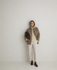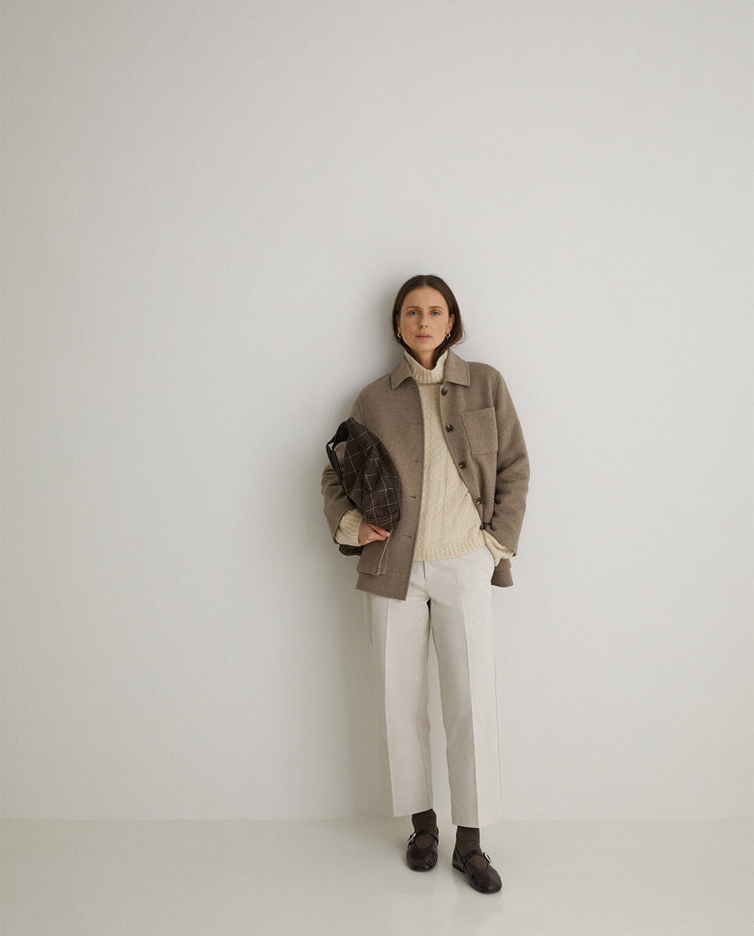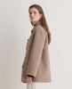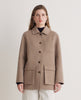 Short regular-fit handmade coat. Double-faced blend of wool and recycled fibres. Collar. Long sleeves. Button front. Two front pockets with flaps and 1 patch pocket on the chest.